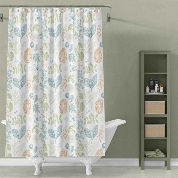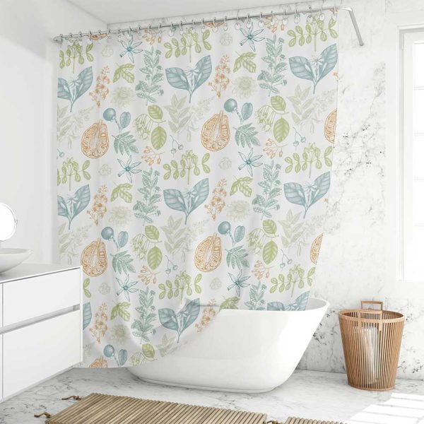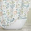 72 x 72 Blue And Green Floral Shower Curtain With Artist Designed Botanical Garden Print – Mold & Mildew, Water Repellent Fabric, Shower Rings & Hooks Included