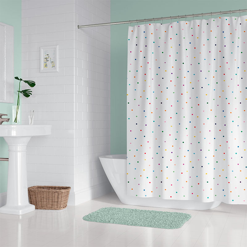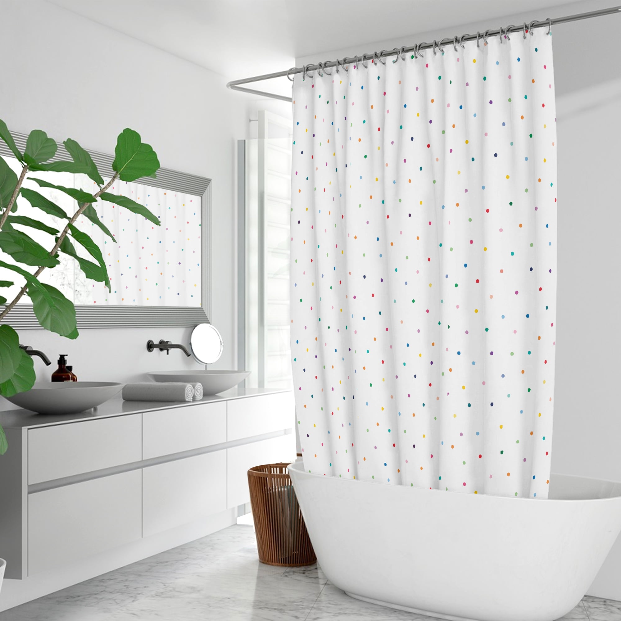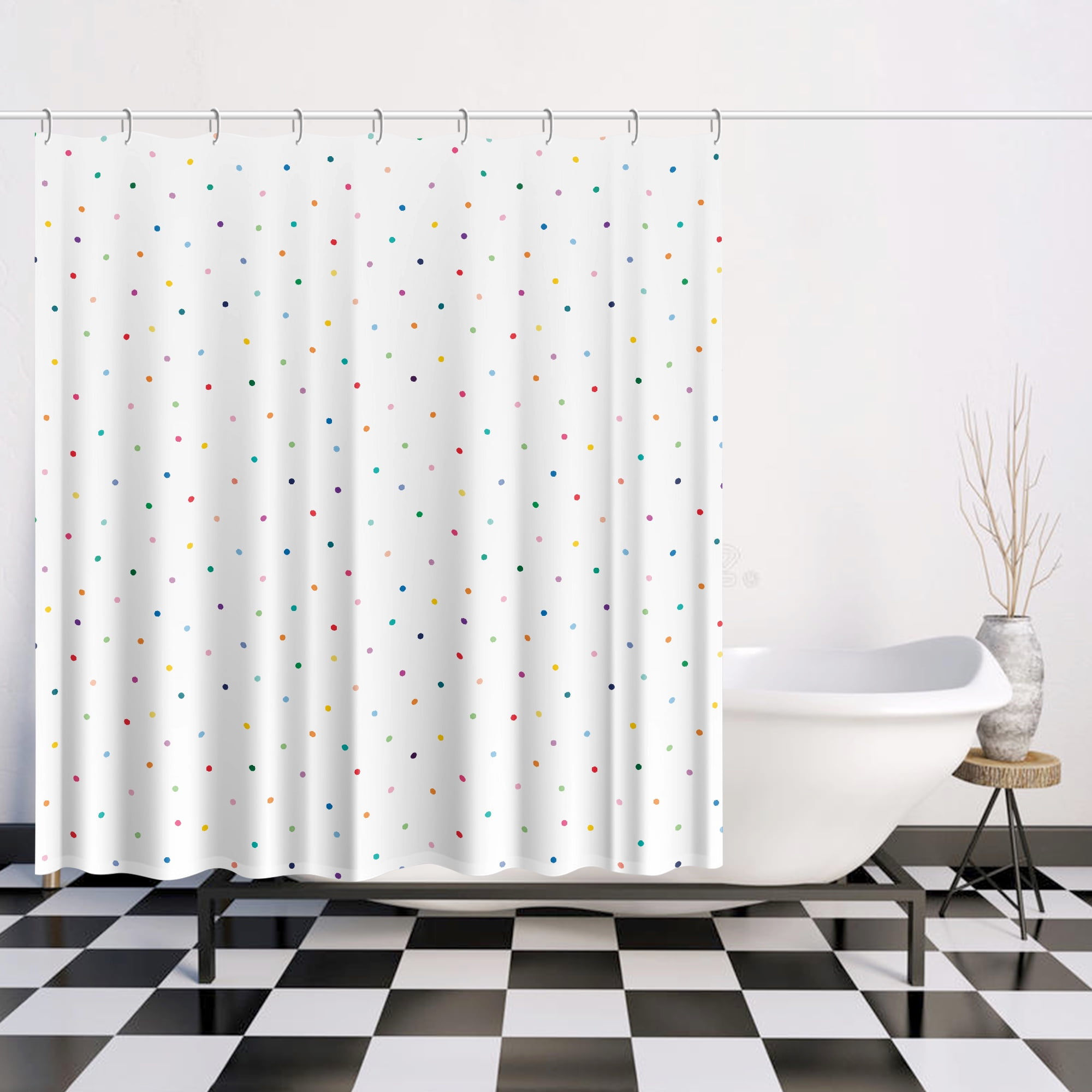 72 x 72 Cute & Colorful Tiny Polka Dot Shower Curtain Bathroom Set – Artist Designed, Water Repellent And Made To Last With 12 Hooks Included