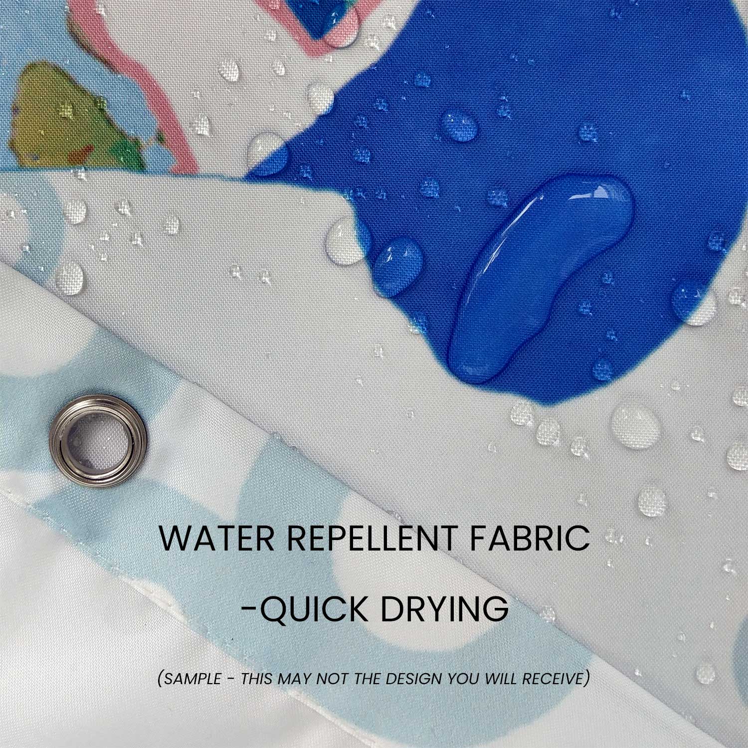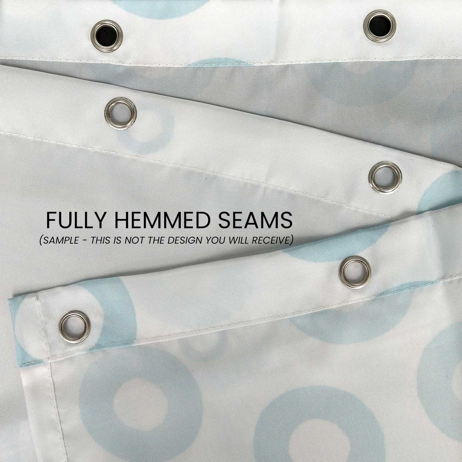 Experience shower time magic with our stunning shower curtain! Dries quickly, repels water, and drapes beautifully. 12 rust-free grommets, fully hemmed edges, and 12 hooks included. No liner needed!