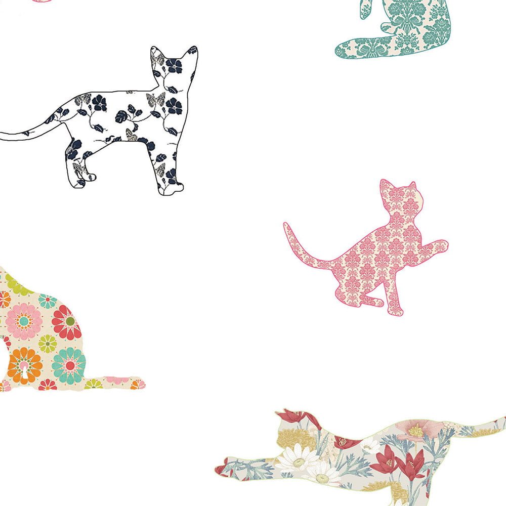 Cat Shower Curtain with Cute Farmhouse Floral Cats