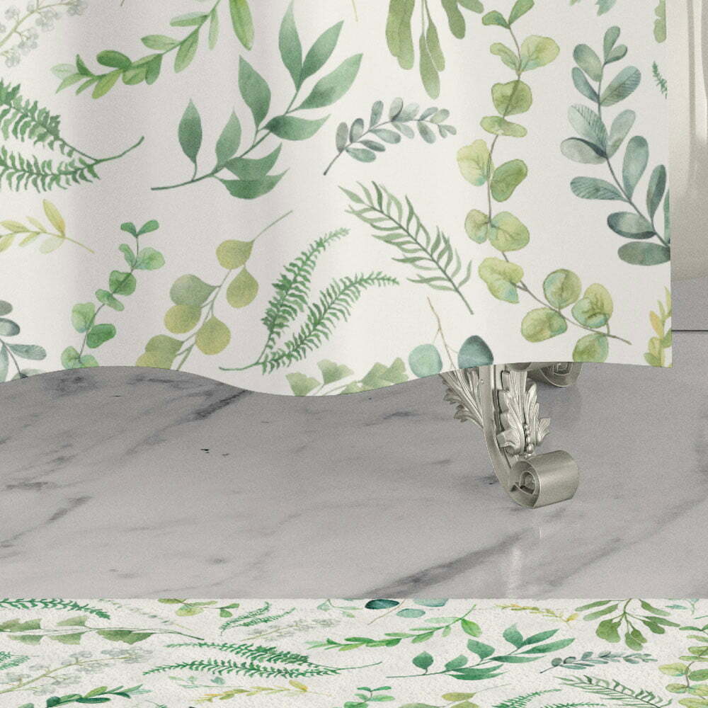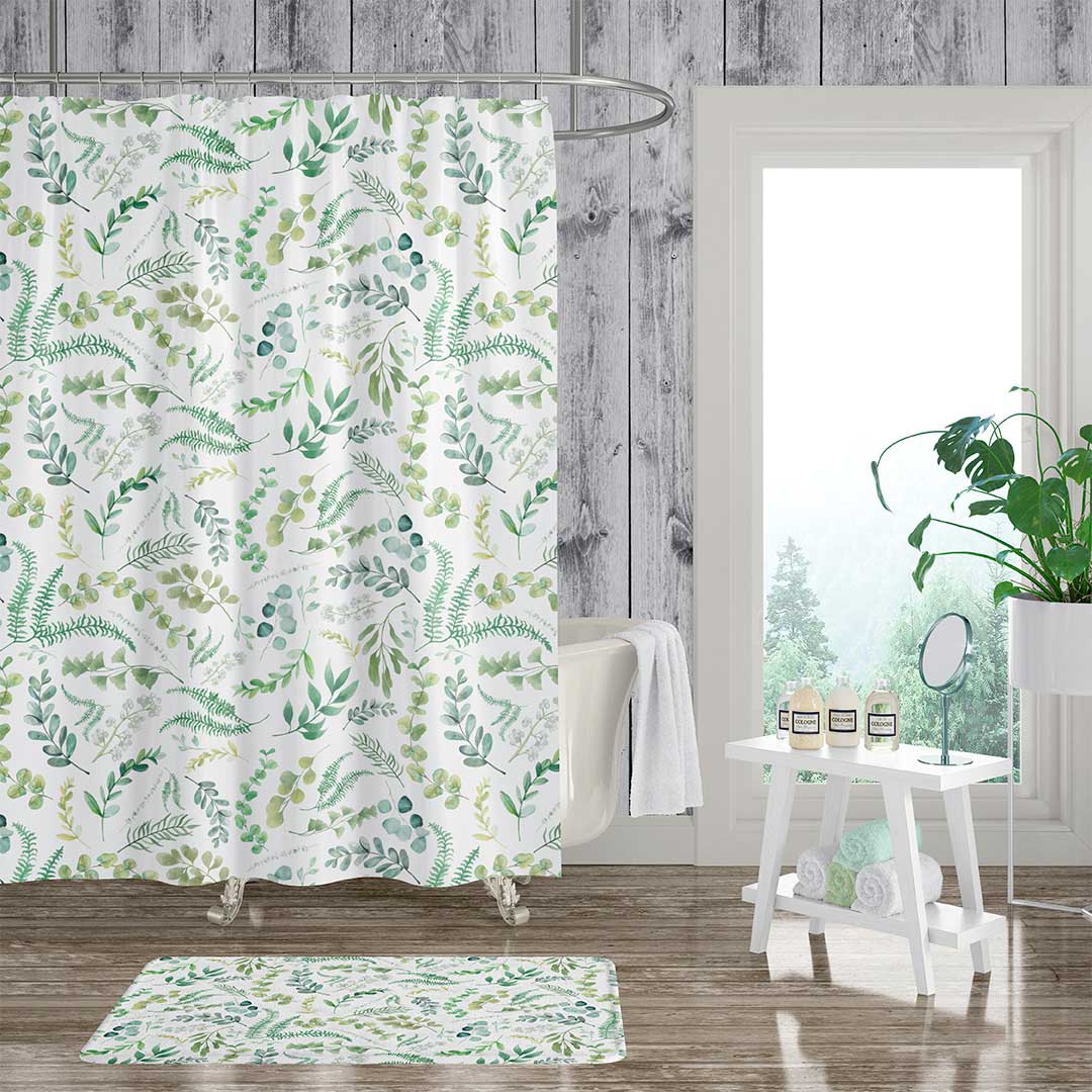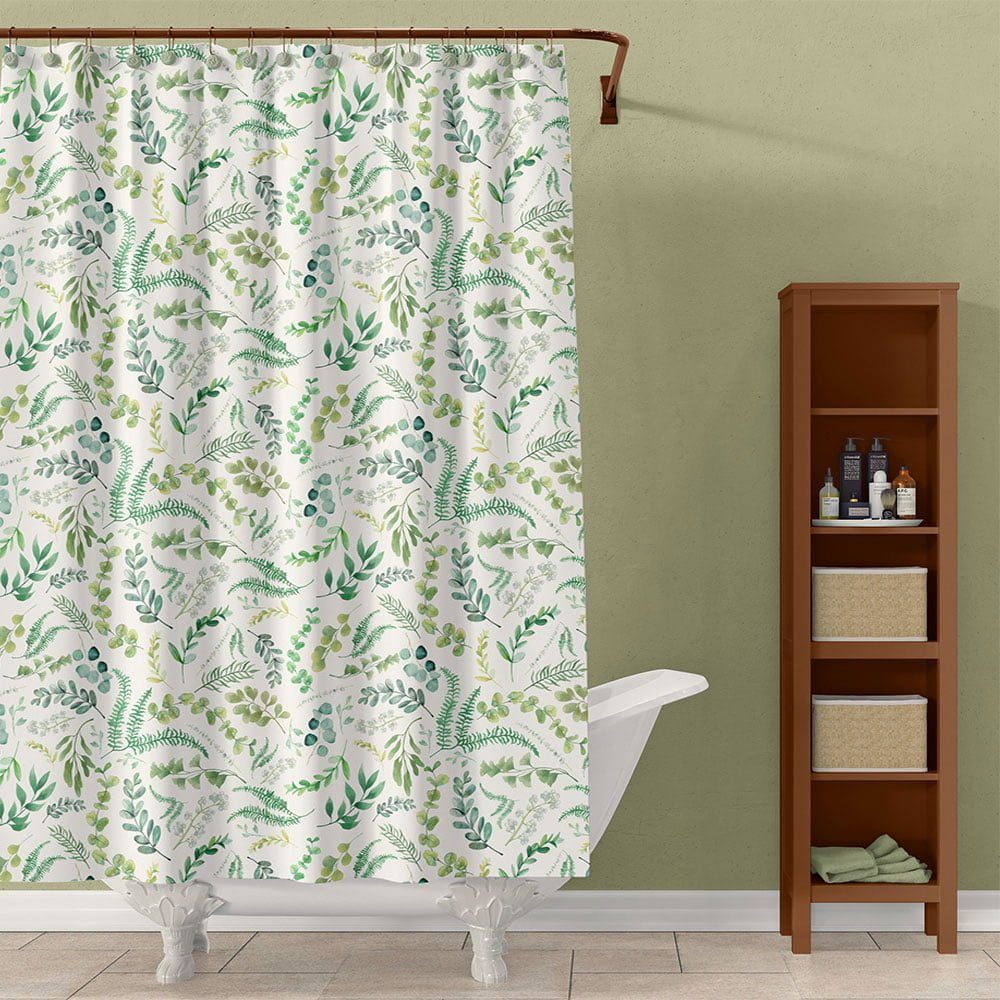 PREMIUM Luxury Waterproof Fabric Shower Curtain – 71×74 inches – Leafy Green – Mold & Mildew Resistant – Watercolor Floral Design