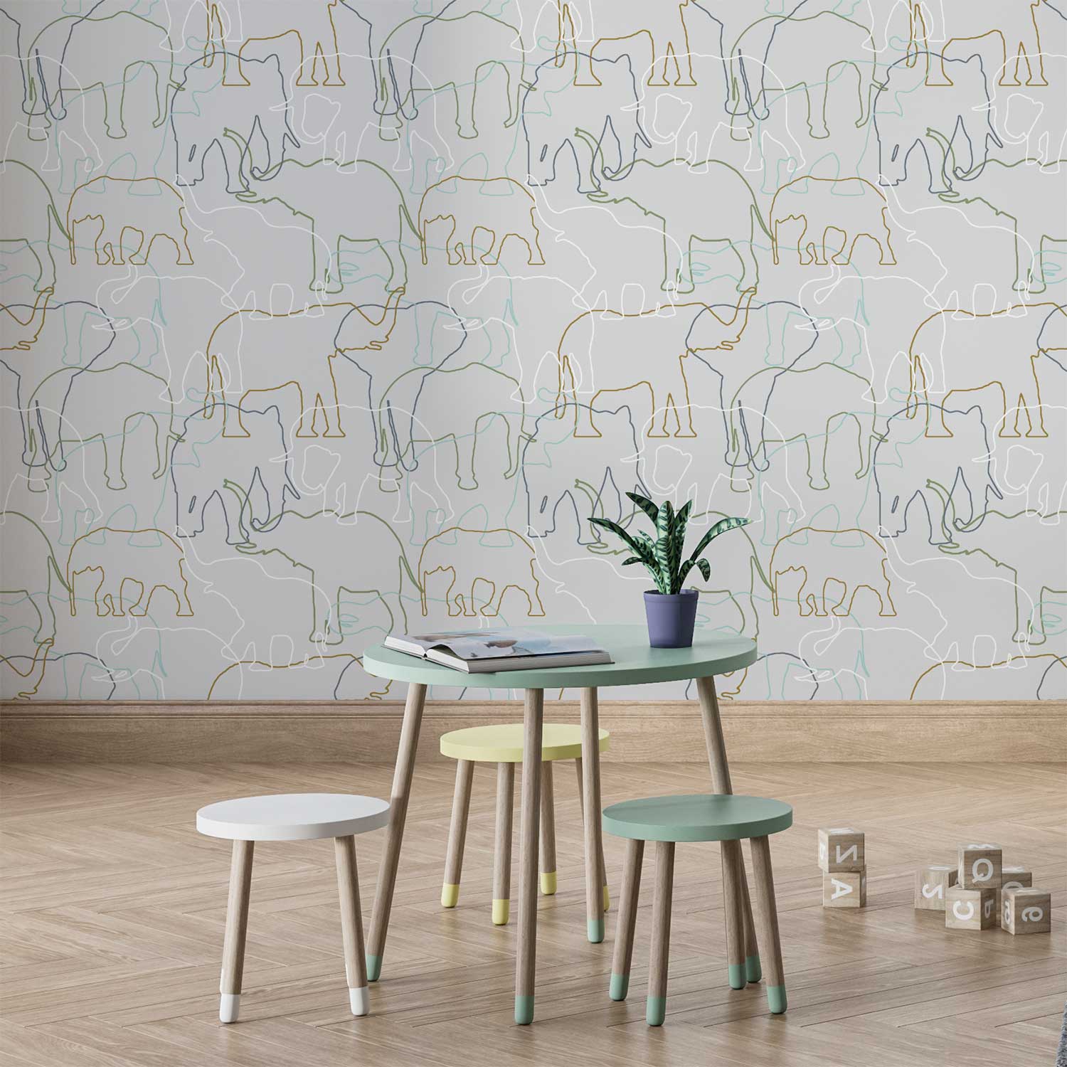 Contemporary Elephant Wallpaper for Nurseries & Playrooms