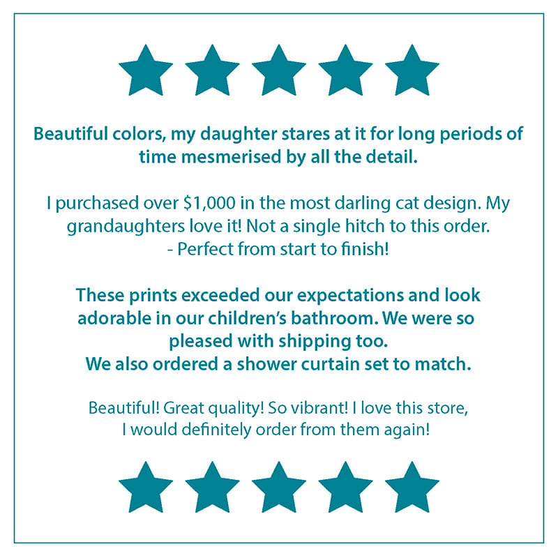 Exclusive Designs: Unique in-house artwork that matches our bathroom sets.