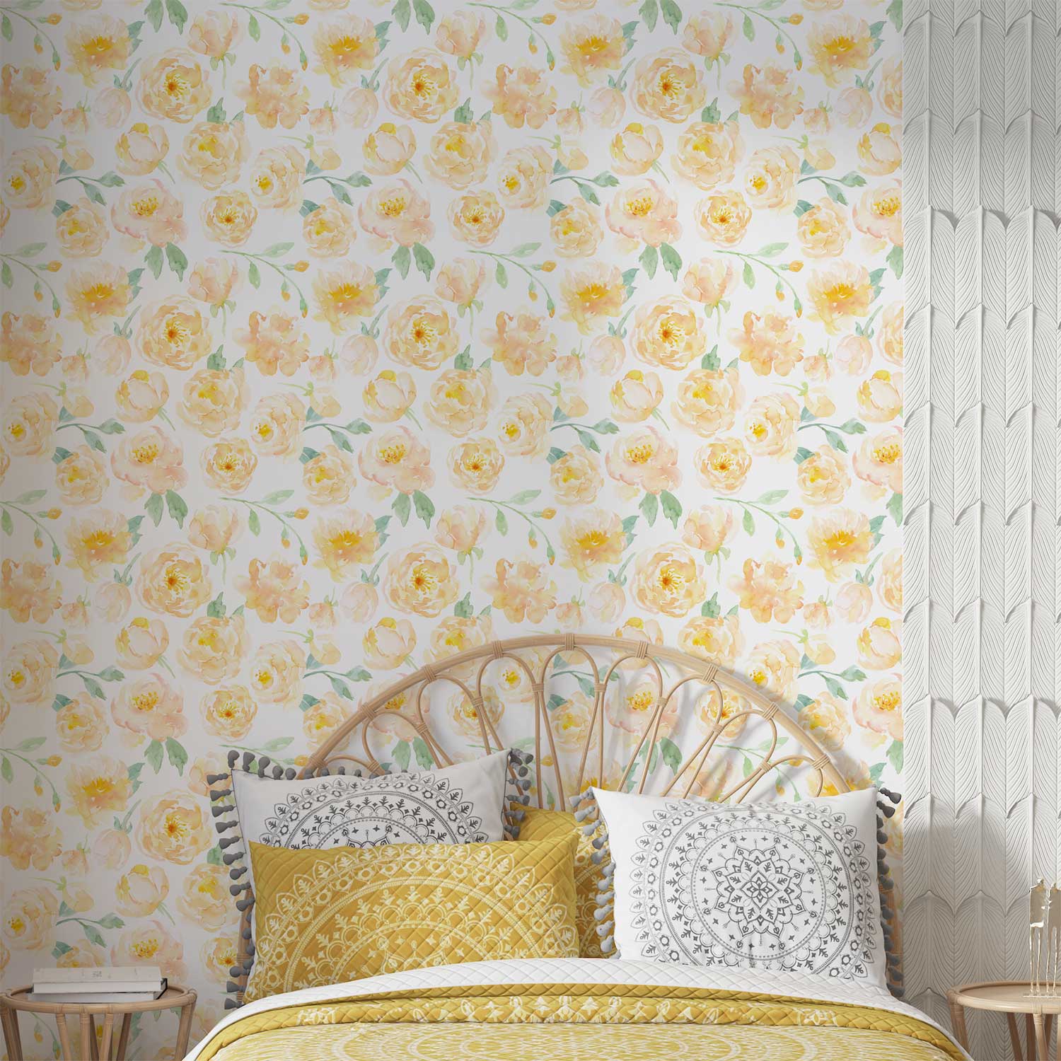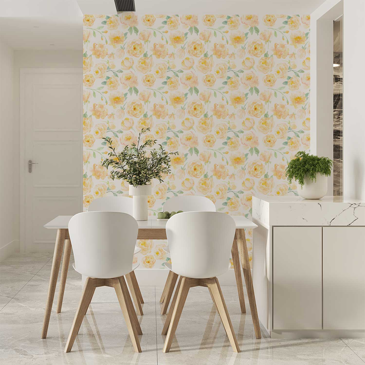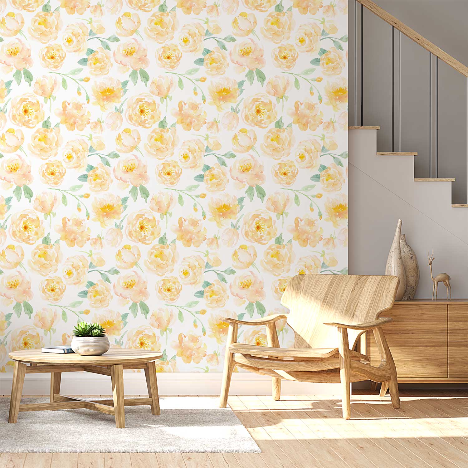 Yellow Floral Wallpaper – Elegant Peony Wall Decor