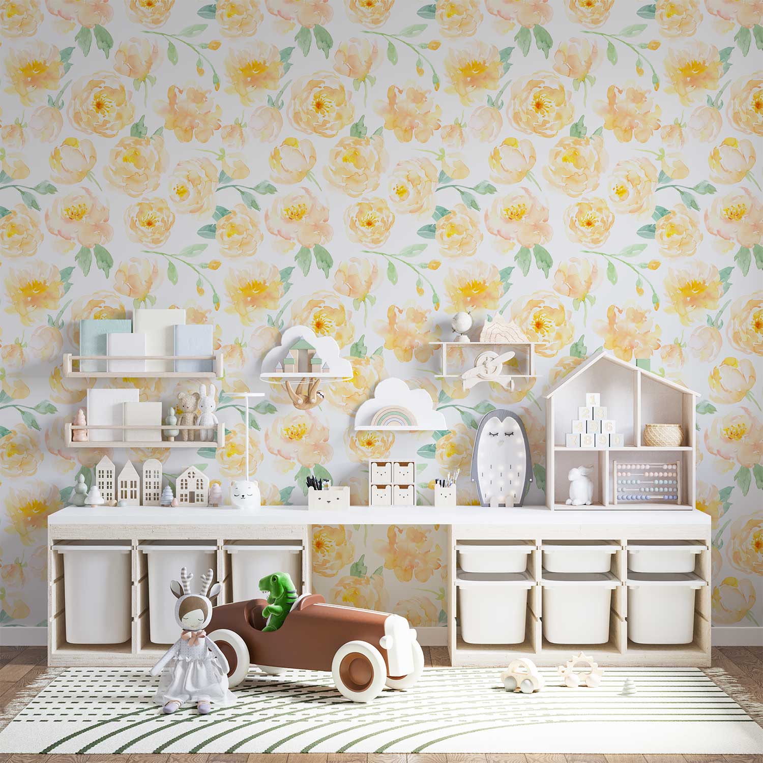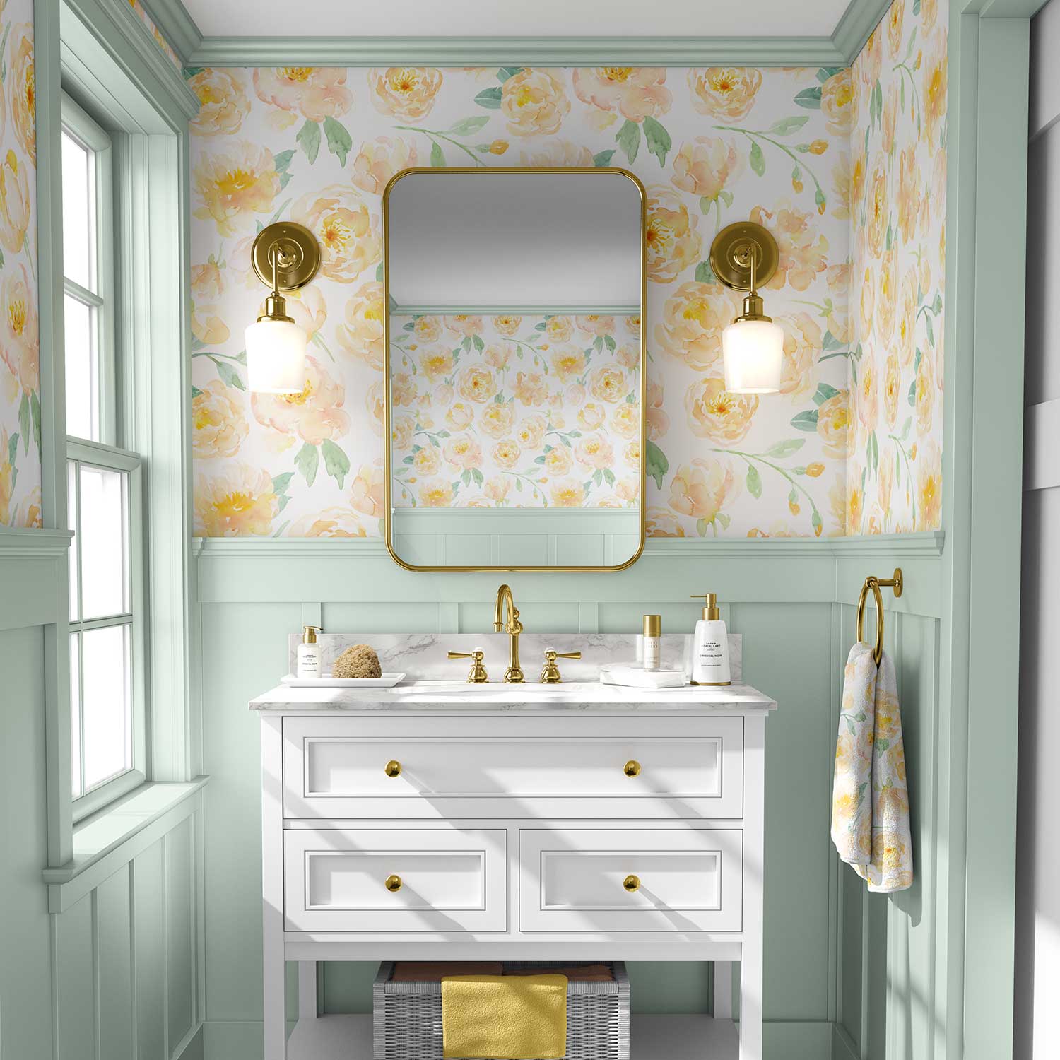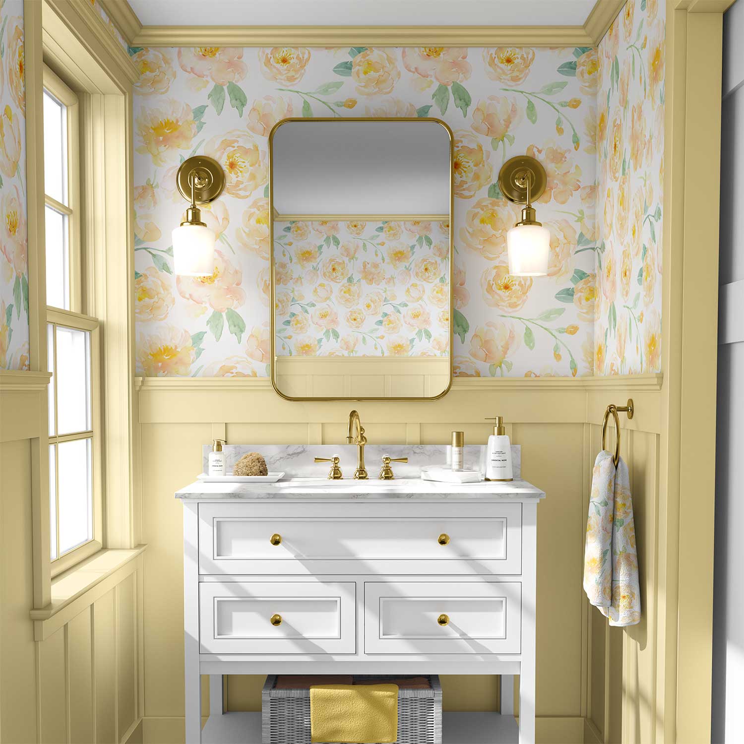 Yellow Floral Wallpaper – Elegant Peony Wall Decor